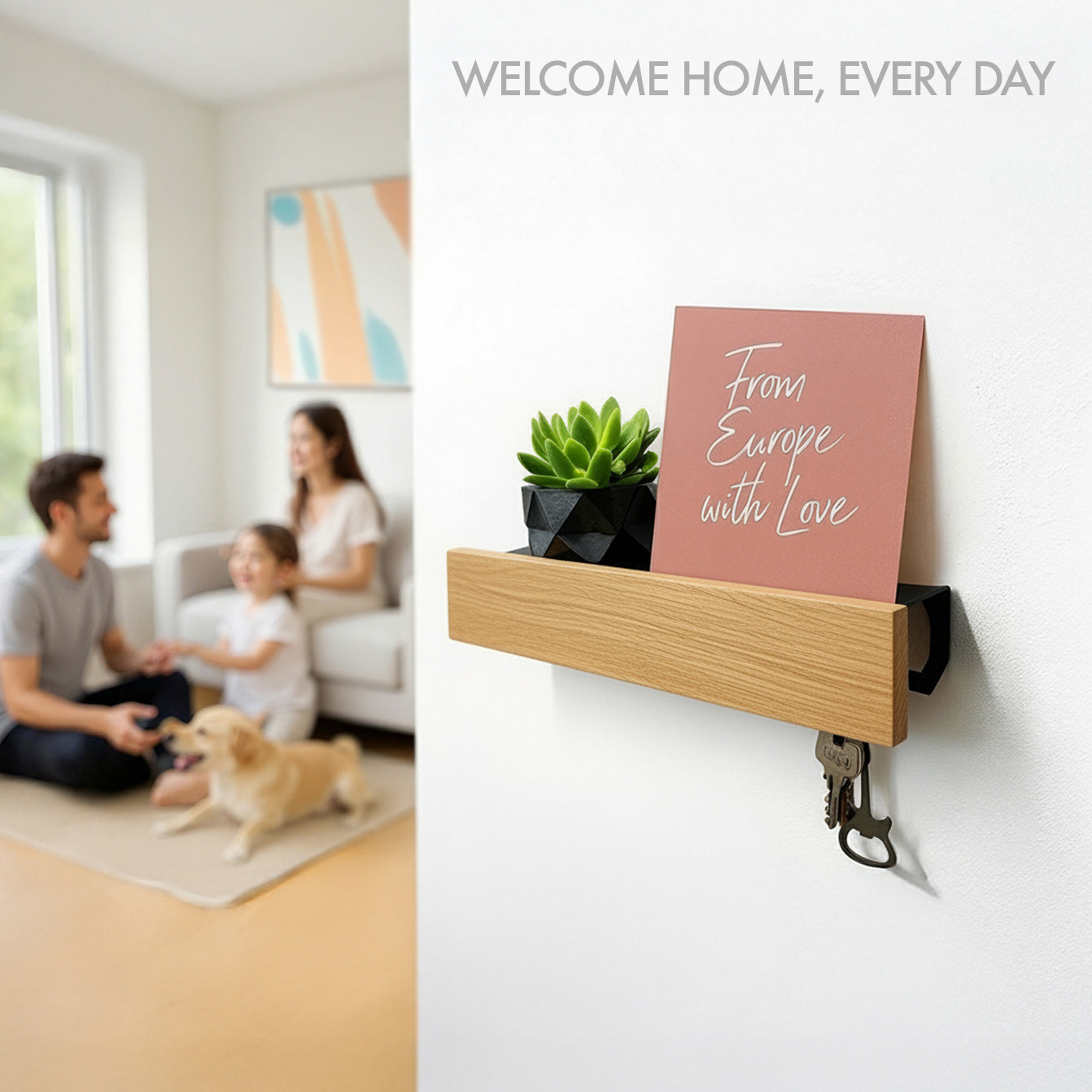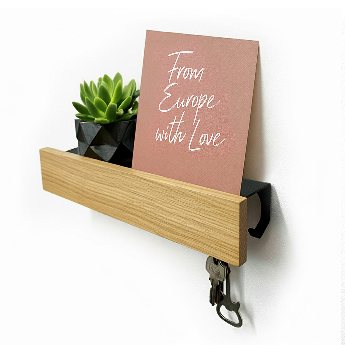 Dębowy wieszak na klucze ze stalową półką | Naturalne Drewno | Styl Skandynawski